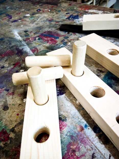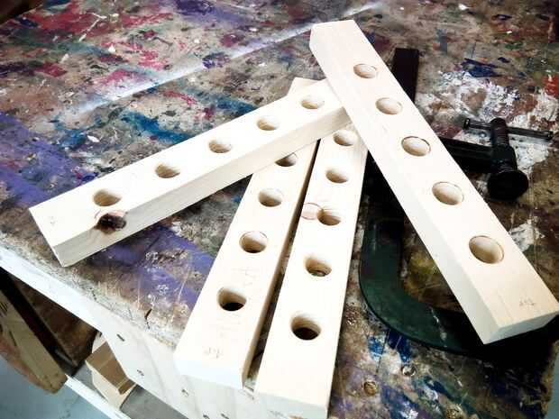 Puesto que tenía cilindros de madera de 20mm de diámetro, opté por hacer agujeros de 20mm. Siempre revisar lo que tienes antes de continuar con el proyecto el material.