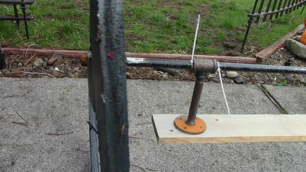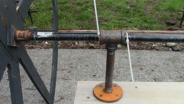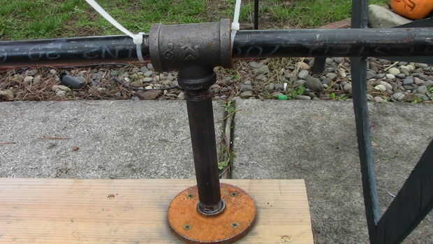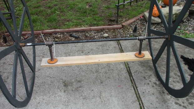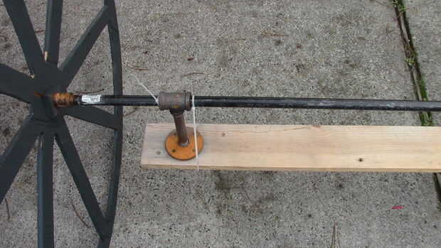 Este paso es muy difícil de explicar, pero básicamente fui a The home depot con medidas y creado árboles de tubo negro. Encontrar las cosas baratas, tubo de gas creo que se llama o pipa de agua, roscado en ambos extremos. Mide el ancho de la carroza y añadido sobre 6-8". Compré ½" tubo, bridas y acoplamientos, niples y tes. Tome un pedazo de 1 x 4 o 2 x 4 y marque un círculo alrededor de 1 pie en de cada extremo. Esto es donde las bridas de ½". Atornillarlas y luego añadir un pezón a una 3/4 x ¾ x ½ t. El lado ½ se vaya a la brida. Ver las fotos de abajo para la mejor explicación. Un agujero en las ruedas para colocar el tubo a través de colocar el tubo a través de él y agrega una gorra de ½ al final. Colocar el tubo a través de las ¾ tes y luego conecte la otra rueda. Tornillo de la Junta hasta la parte inferior del frente del coche fúnebre y parte posterior y usted tiene ruedas! Hice mía por lo que las ruedas estaban paradas aproximadamente 1/2" fuera de la tierra. Giran pero no teniendo carga!!!! Otra vez los cuadros explicarán esto mejor. Ponerse en contacto conmigo y te puedo dar medidas exactas. Estoy escribiendo esto ya que el coche fúnebre es todavía y no desmontado todavía.