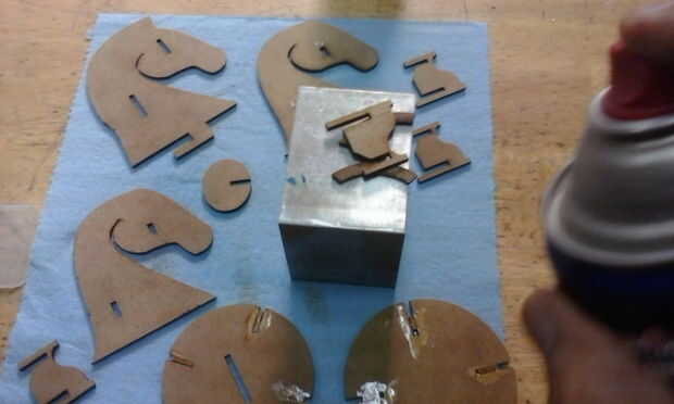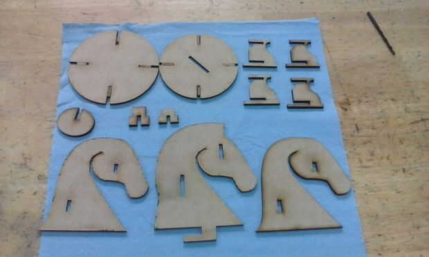 Se trata de un conjunto de planes para la fabricación de piezas utilizando herramientas de carpintería básica, ningún trabajo de torno se requiere de ajedrez de madera. Las piezas están hechas de contrachapado de 7 mm y redondo de espigas de pino en