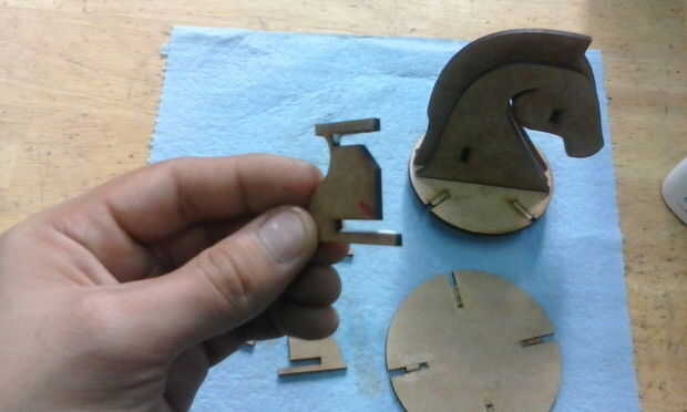 Se trata de un conjunto de planes para la fabricación de piezas utilizando herramientas de carpintería básica, ningún trabajo de torno se requiere de ajedrez de madera. Las piezas están hechas de contrachapado de 7 mm y redondo de espigas de pino en
