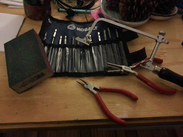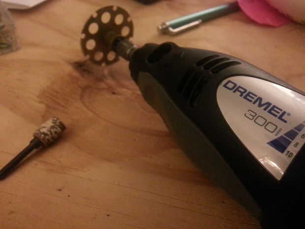Papel de lija (grano 60 y 120) - utilicé el accesorio de papel de lija, un bloque de lijado y lija para mi dremel