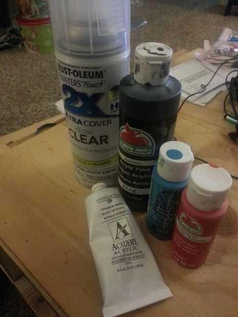 Pintura - esto es donde usted puede conseguir creativo. Hay muchos esquemas de color diferentes que hay en internet. Decido usar rojo, blanco y azul (para que coincida con el mis amigas madre tiene de Suecia). También usé negro para pintar el espacio entre las piernas que normalmente sería ser tallado hacia fuera (pensé talla las piernas demasiado delgada para aguantar el desgaste de llevar los pendientes)