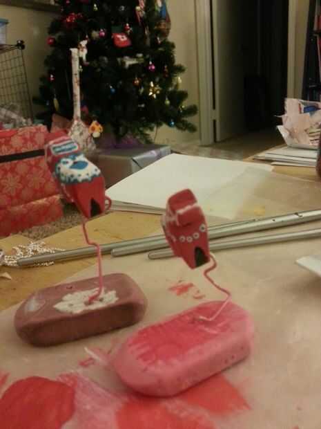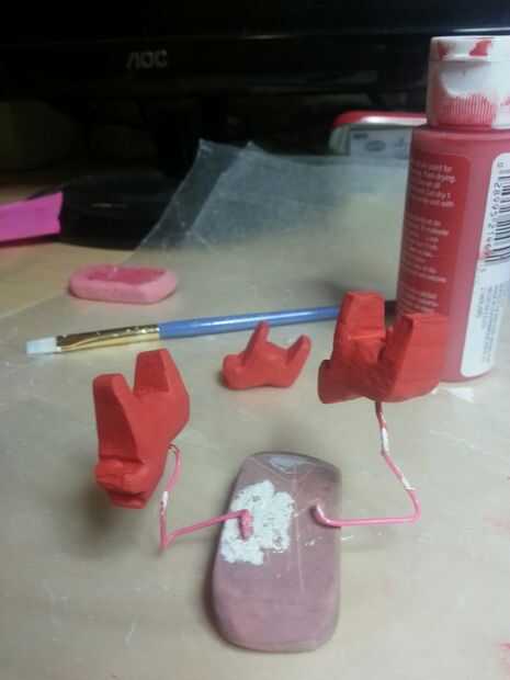 Hice tres capas de pintura blanca, tres capas de color rojo la pintura y luego pintaron los detalles.