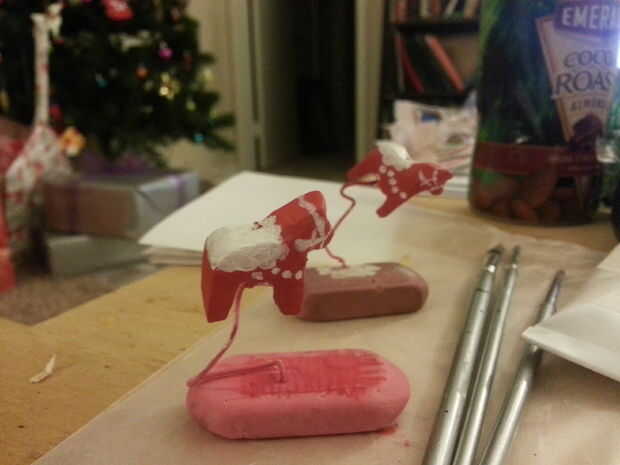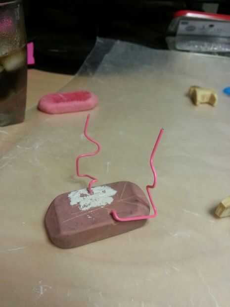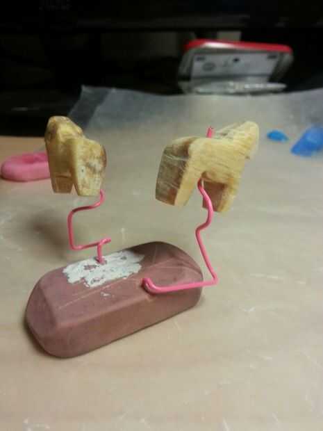 Utilizando una goma de borrar y clips de papel hice una plantilla para el caballo.