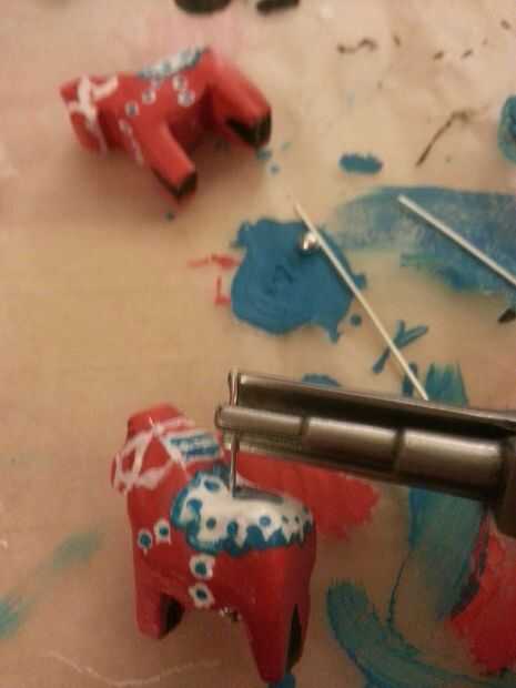 Colocar una tira de metal en el perno cabeza de continuación, cortar a su tamaño. Luego usé mi alambre, pinzas de colocación para formar el lazo para sujetar el post pendiente.