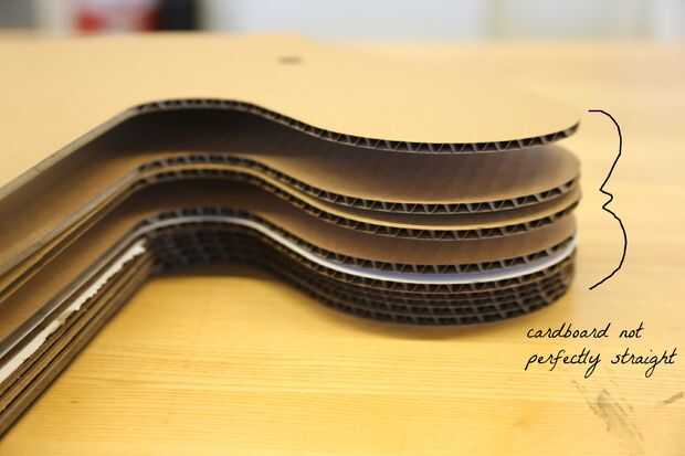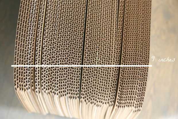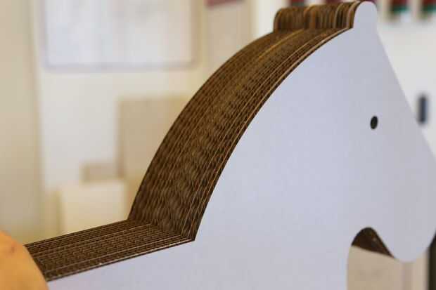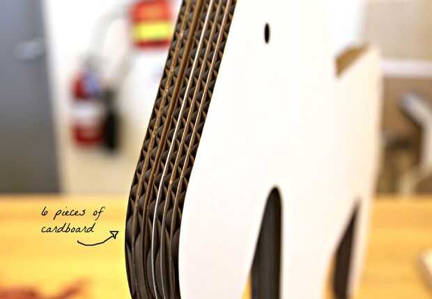 No sabía exactamente cómo densamente quería que el caballo, así que seguí láminas de corte de cartón hasta que estuve satisfecho que el caballo sea estable y no vuelque. En última instancia, usé 57 láminas de cartón, que comparado a un ancho de 9 1/4 de pulgada. Podido más grueso, pero para mi público objetivo (bebé de 18 meses de edad) quería para poder "montar" y sentarse cómodamente en el caballo.