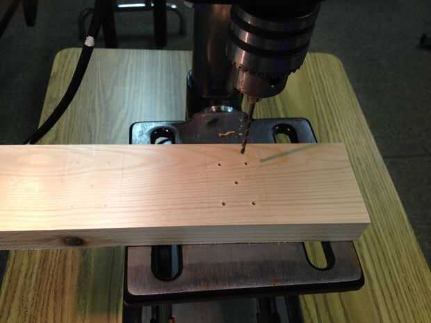 Usando una prensa del taladro, previamente perforados los agujeros guía en y a través de varios tableros, avellanar la madera con el forestner de 1/2 pulgada poco para ocultar los tornillos.