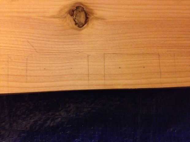 Con la primera tabla como guía, había medido hacia fuera de los espacios para las tablas restantes y había marcado en el eje de balancín. Una vez que se dio cuenta de la colocación, cada placa fue pegado y atornillado en su lugar.