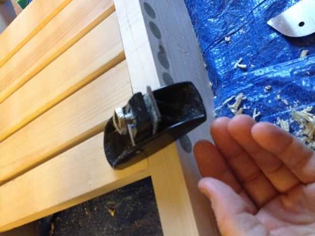 Una vez construido el eje de balancín, le enchufamos los orificios de la cubeta del mismo modo, le enchufamos los agujeros de la pierna (es decir, con espiga de 1/2 pulgada y un corte de sierra). Luego utilicé la mano lugar y papel de lija para asegurarse de que las tapas de tablero todo alinearon con la parte superior de la mecedora.