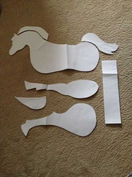 Como dije antes, he investigado diferentes diseños y busca caballos de balancín en línea. Una vez tuve una idea de lo que quería, dibujé las plantillas para las diferentes piezas que van en el caballo y recortar las plantillas de papel. Si desea utilizar mis diseños y proporciones, sólo saltar la imagen de las secciones de madera cortadas por encima hasta que el tamaño que desea utilizar como una guía.