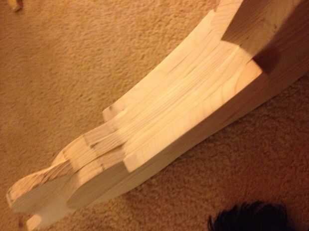 Sujeta esta sección firmemente para evitar que cualquier apertura sensible entre Junta. Sin embargo, aplican las mismas reglas que antes. Asegúrese de poner restos de madera entre la abrazadera y la madera del caballo.