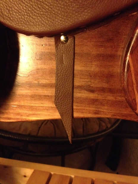 Para dar la ilusión de revolver ups, tomé algunas de la piel sobrante y había pegado una pequeña franja a cada lado del caballo colgando hacia abajo. Empujó en tack en él cerca de la parte superior de la tira.