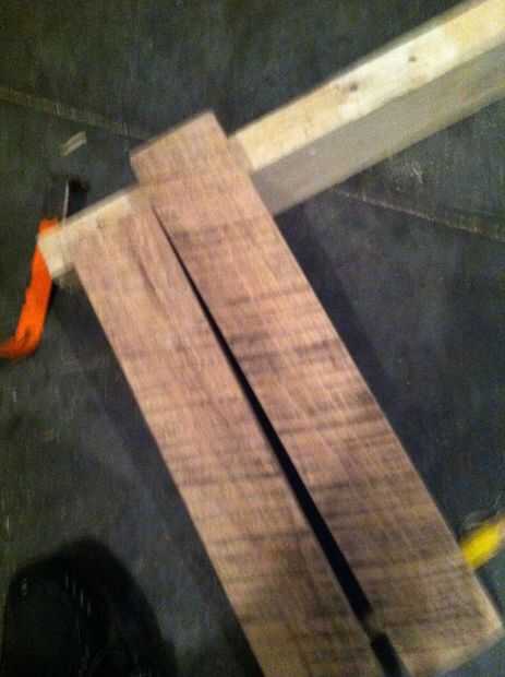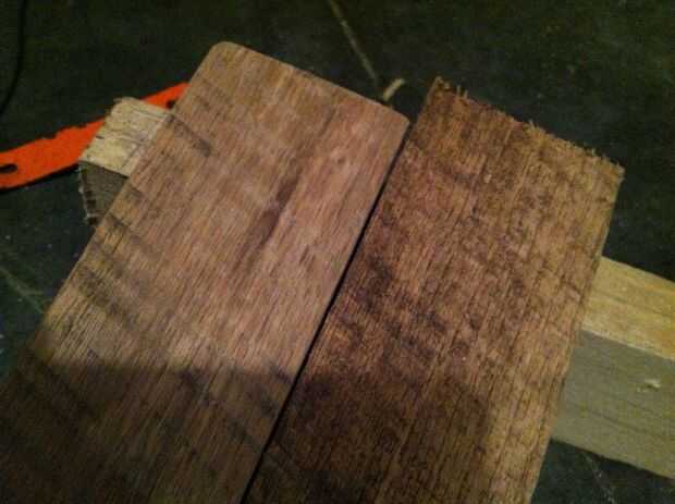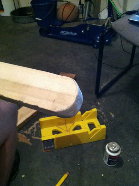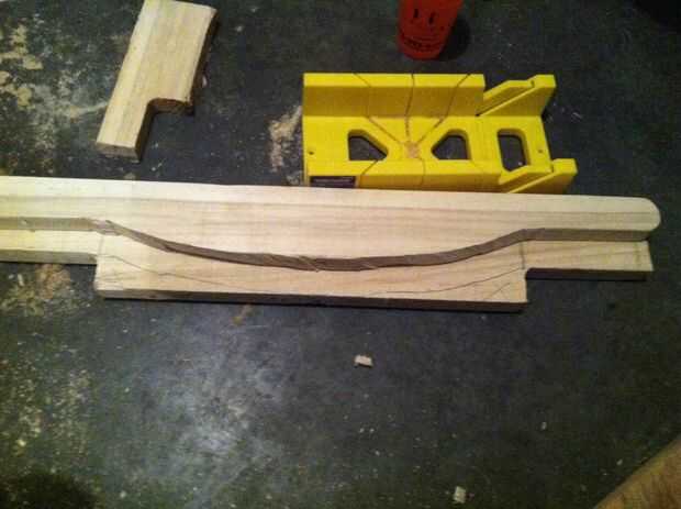 De un corredor más pequeñas (aprox. 1 "x 3") que corte dos segmentos de 15", con una caja de ingletes para mantener mis cortes en ángulos de 90 grados perfecto. Ambas piezas de la arena.