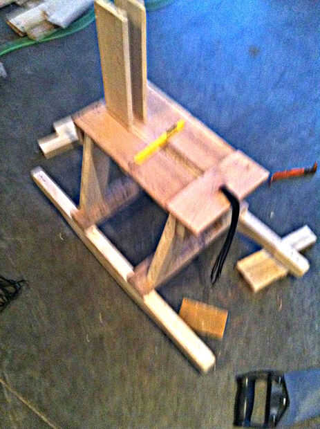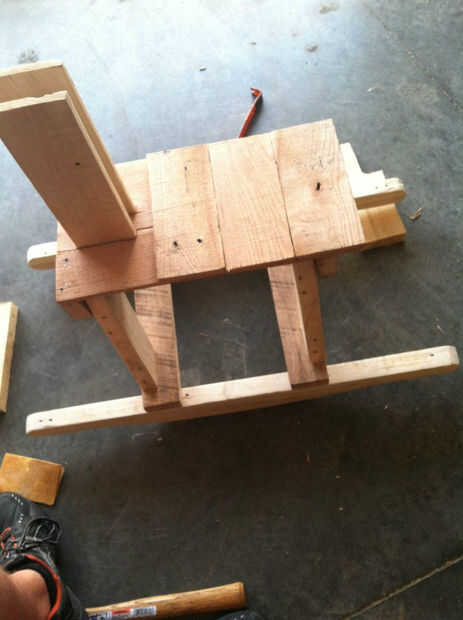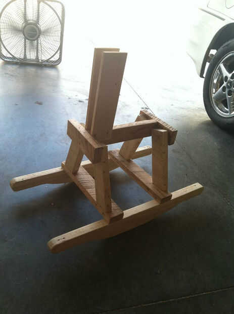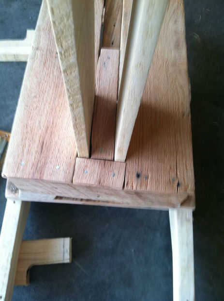 Para la medida del cuello, cortar y lijar 2 12" las piezas de los deckboards. A continuación, coloque las piezas de cuello como cerca de un lado del caballo y con unos 2" del cuello en la viga. Este es ahora el frente de su caballo. La longitud de este puede ser extendida a todo el ancho de la viga, pero mis piernas consiguieron en el camino. Dicho esto 2" fue más que suficiente para proporcionar apoyo. Utilice pegamento de madera y clavos para sujetar.