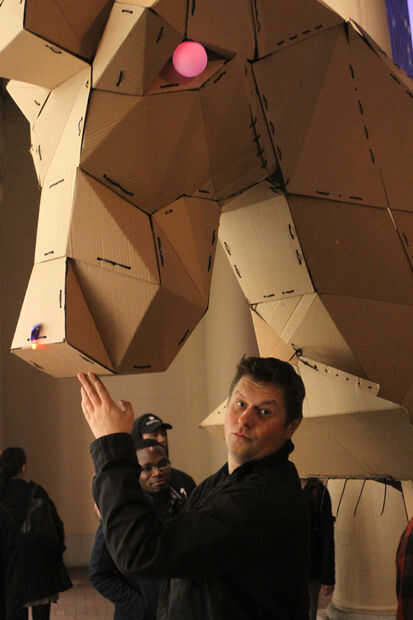 ¿Por qué sucedió esto? Habíamos sido invitados a la fiesta de Navidad de Autodesk a pocas cuadras de nuestro laboratorio y pensamos que debemos tomar a lo largo de un presente. Algo único. Algo memorable. Algo lo suficientemente grande como para ocultar un equipo de crack de tropas armados con la espada de cartón.