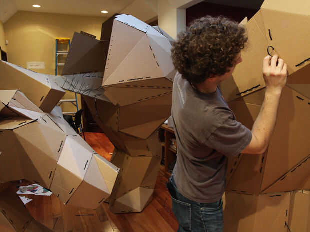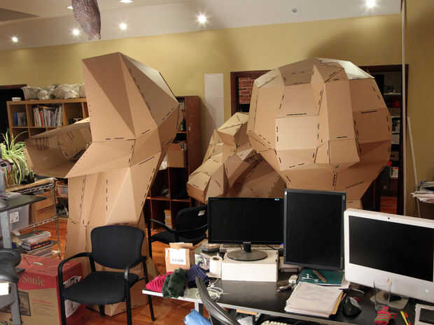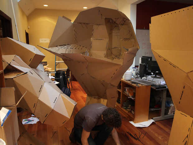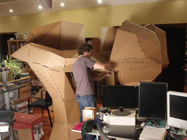 Construimos el caballo en tres partes: cabeza, patas delanteras y la grupa. Al final del segundo día, estábamos listos para unir las tres partes.