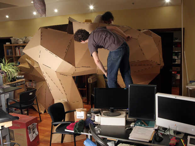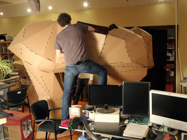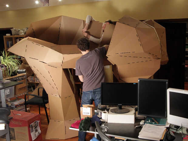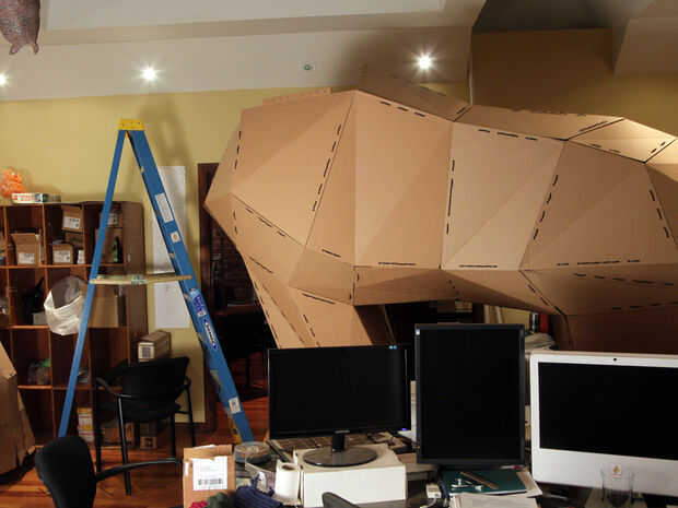 Perseveró, sin embargo y pronto tenía un caballo sin cabeza entero. Tenga en cuenta que el cuerpo era completamente capaz de soportar su propio peso simplemente por la rigidez del cartón y la naturaleza compleja de los pliegues. En esta etapa, no hubo ningún esqueleto de cualquier tipo dentro del caballo. Bien, ningún esqueleto de caballo.