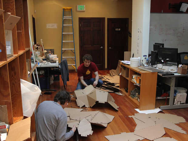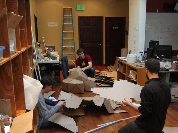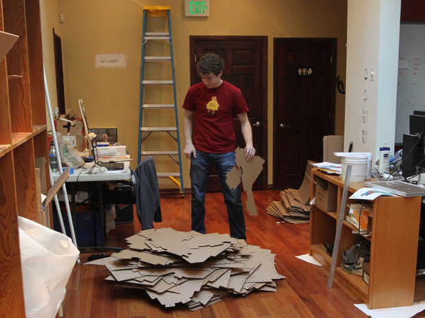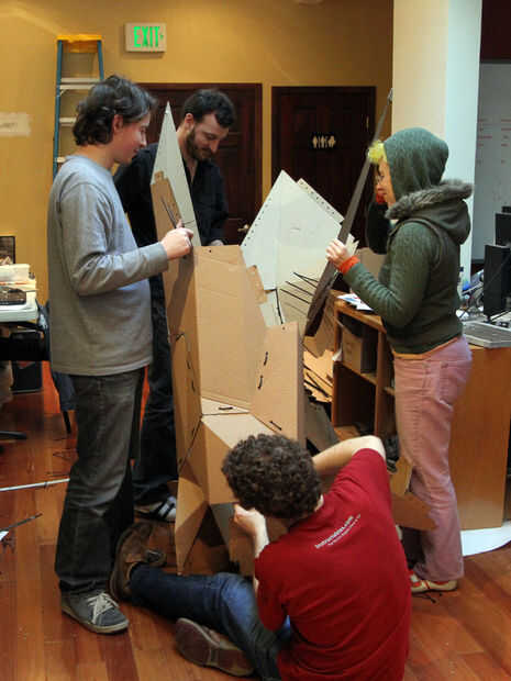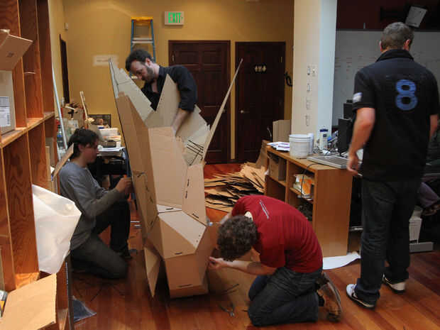 Mientras trabajábamos, más personas se unieron a a. En varios puntos, randofo tuvo que sentarse dentro de la cabeza del caballo para unir los trozos.