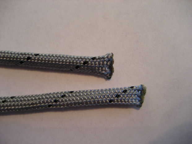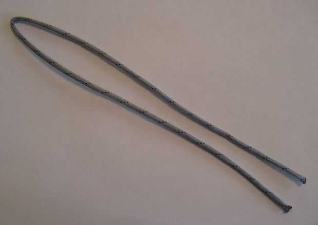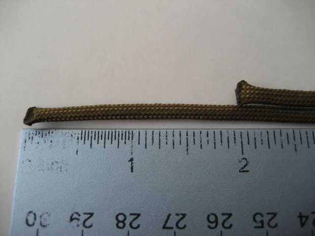Corte dos pedazos de paracord, uno 36" y el otro 60".  Quitar las hebras del centro y guardar para el pelo de caballo.  Corte dos trozos de alambre de calibre 22 de la misma longitud.  Utilizar un encendedor para derretir un extremo de cada revestimiento externo de paracord e Inserte la correspondiente longitud de alambre en el centro.  Estire el paracord en el alambre y el otro extremo de la paracord sellando el cable dentro del derretimiento.  Cada longitud del doblez por la mitad para encontrar el centro.  Desplazamiento centro de 60" de la cuerda por 2" como se muestra.