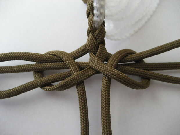 Usando los cables de corto en la parte superior, doblar detrás en sí mismos para formar las piernas.  Se superponen las puntas en el centro por lo que salen detrás de las perneras. Utilice los cables más largo forma bucles alrededor de las piernas como se muestra en la imagen.  Apriete estos lazos para formar los hombros delanteros del caballo.