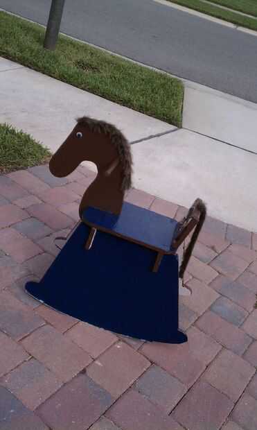 después de encontrar caballos balancín para vela que cuestan más de $200 que decidí probar mi mano y los niños los juguetes para mi sobrina. Con todo creo que me pasé unos 20 dólares, sin incluir la pintura ya tenía a mano y madera contrachapada extra ahí. Ella ha sido oscilante en este chico poco malo por más de 2 años y no ha tenido todavía un problema.