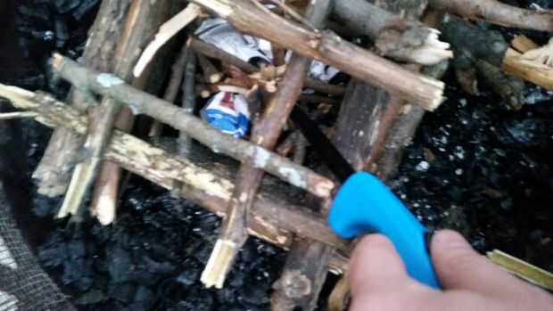 Punta: Sople suavemente sobre la llama hacia el centro del tipi para difundir más rápido y uniformemente quema toda la leña el fuego.
