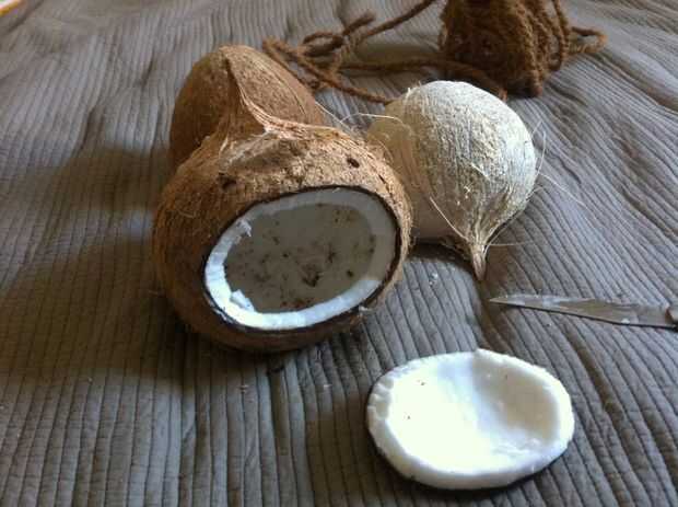 Bien lavado con agua jabonosa y secar la cáscara de coco.