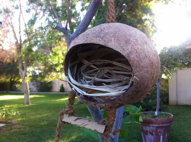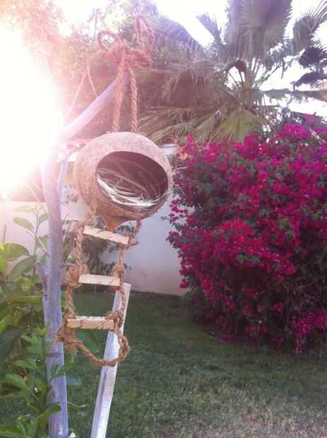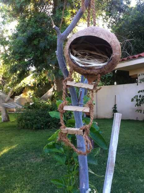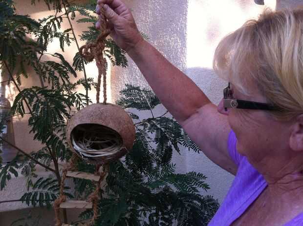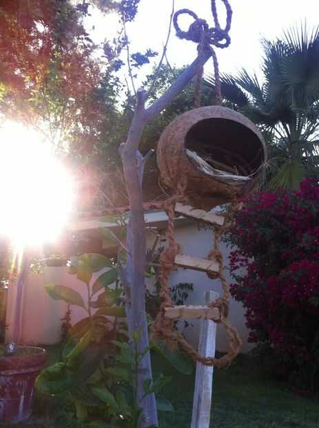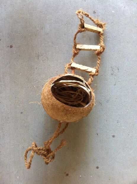 La choza constituida este tutorial fue donada y ahora es la choza nueva de colgar para una 13 años femenino sol Conure [Aratinga solstitialis, una especie en peligro crítico] llamado "Sunny" que reside en la zona de aterrizaje el Santuario de loro. :)