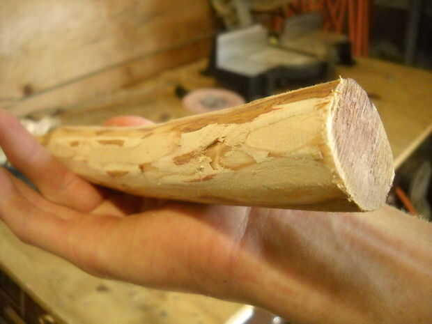 2. Retire las piezas nudosas y piezas puntiagudas apagado el registro utilizando una sierra de banda
