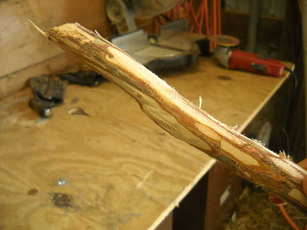 4. con un cuchillo dibuja tome el resto de la corteza de la log (resulta que terminé usando sólo la amoladora para la mayoría de los acabados)