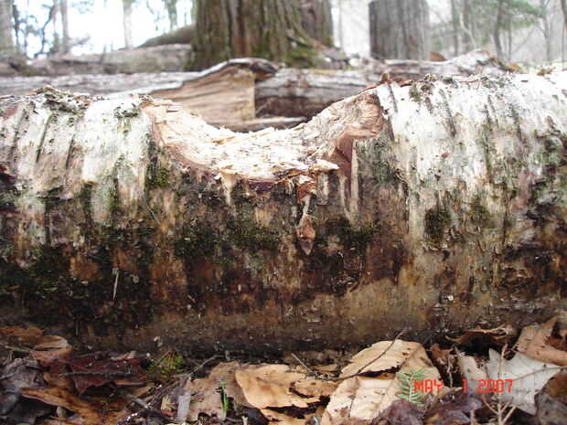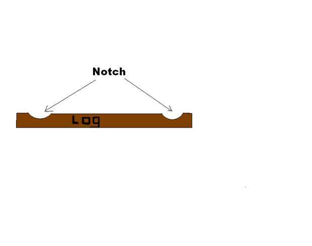 Luego cortar dos registros de 11 pies con el hacha o la Sierra de buck. Un árbol debe darle de dos a tres registros de 11 pies. Una vez que los troncos son cortados a longitud pone paralelas entre sí, les espacio aparte 9 pies por lo que hay cerca de 1 pie de sobre la caída. Cuando en el lugar corte muescas de un pie más o menos desde el final del registro, corte la muesca de 1/4 a través del registro. La muesca realizará el Registro siguiente en el lugar. Para ello en cada extremo de ambos registros. Pero sólo en la parte superior de eso registros.