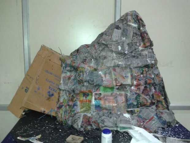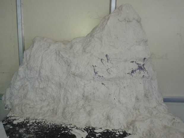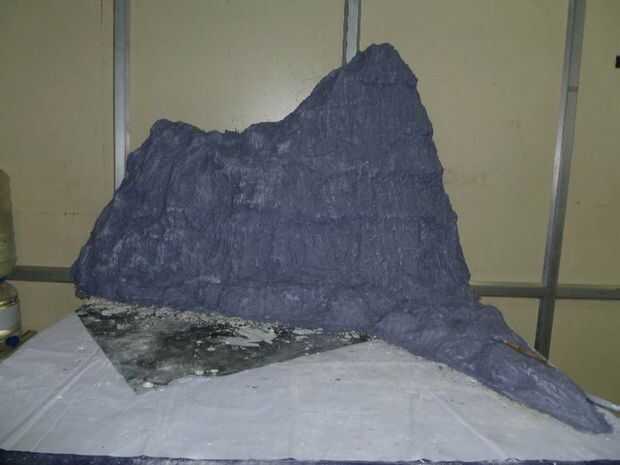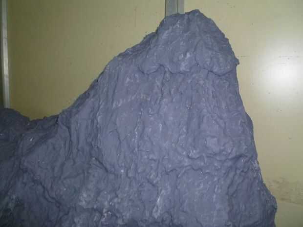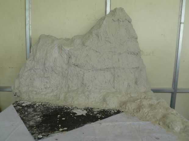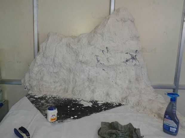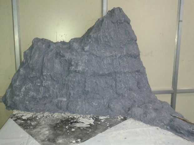 usando una tabla de café para hacer una forma como usted desea. Mezcla una goma blanca en el agua y sumergir el periódico. a continuación monte el periódico en el tablero marrón para hacer una forma como de montaña. Mezclar una escayola con agua y soplar en el periódico para hacer una forma como de montaña.