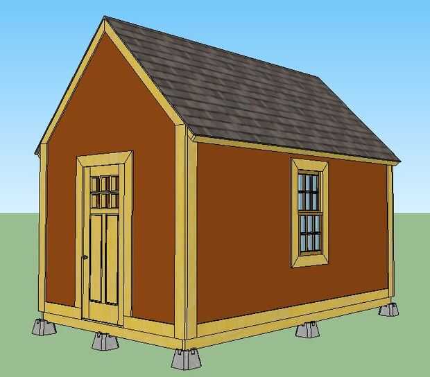 La imagen muestra ideas para el acabado exterior. Puertas y ventanas pueden ser reciclados o salvamento