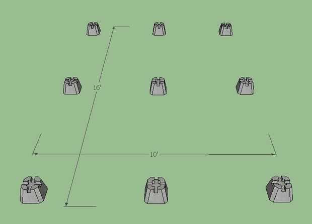 Estos bloques de cubierta deben colocarse sobre sólido lleno de suelo y una cama de 3 pulgadas de grava se recomienda pero no es necesario.