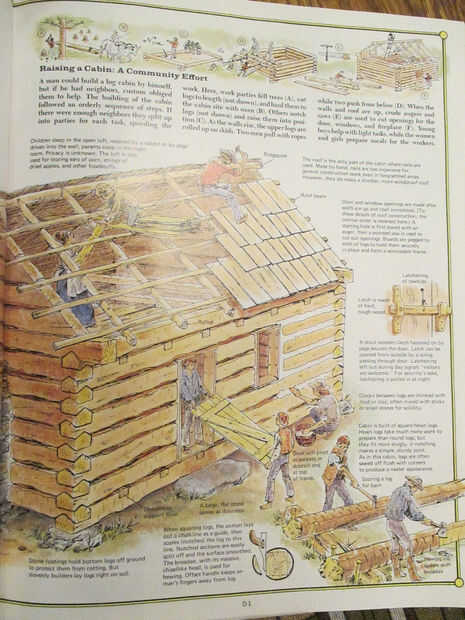 Tenemos un libro llamado la "historia del gran oeste americano" que es sólo una fuente de información. En el interior fueron varias páginas sobre cómo se construyeron unas cabañas de madera. Eso y mis días de jugar con Lyin' Lincoln Logs me dio todos los conocimientos de ingeniería que necesitaba. ; )