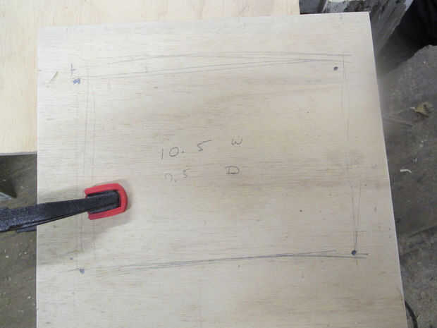 Se utilizó una pieza de madera de hoja para la base, 3/4" creo. Quería que la plataforma lo suficientemente grande como para permitir por un porche delantero y lo suficiente a los lados y para el equilibrio visual.