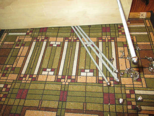 Una tuerca por la parte inferior, debajo de la plataforma, luego alternativamente la alimentación de los registros, entonces más adelante endurecer todo con 4 tuercas de mariposa.