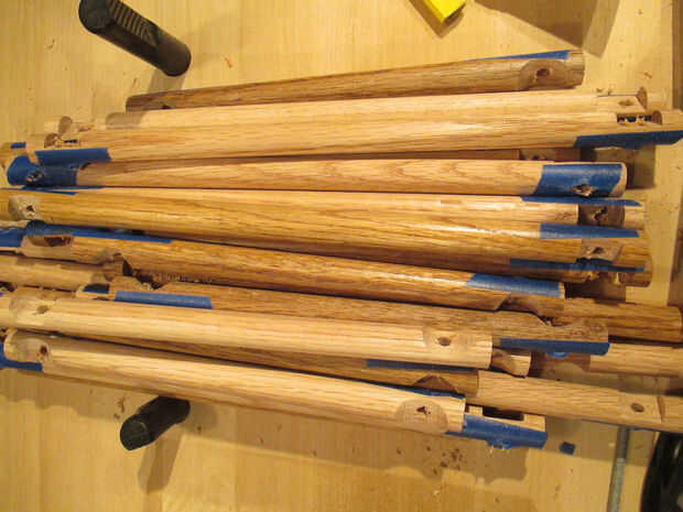 Tediosamente perforar agujeros a través de todos los extremos del registro, usando la cinta azul para reducir astillamiento/escape.
