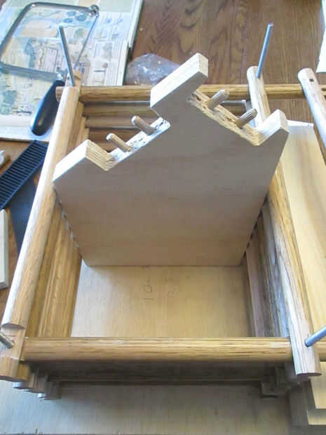 Cortar dos ranuras de 1 x 3 que cabrían en ellas. Los orificios perforados e insertado de clavijas mini en ellos, y correspondientes agujeros en la (2) 1 x 3 "s. Porque el compuesto de cuñas (para el techo, siguiente paso) son flexibles, soy capaz de mover el techo nuevo y.