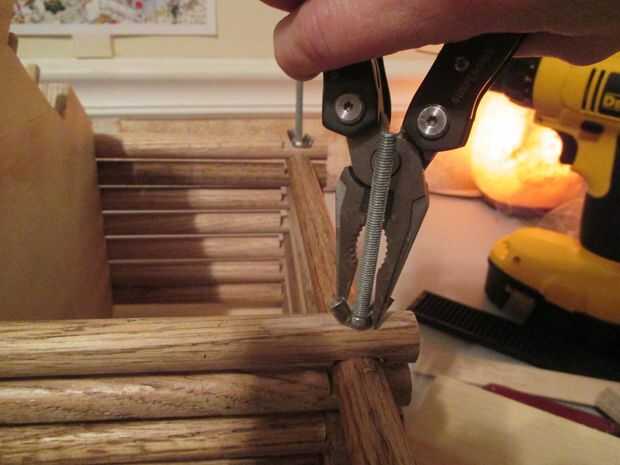 Luego apretar las tuercas de mariposa y recortar las barras delanteras. Salí de la parte posterior que en su longitud para alimentar a través del techo (para ayudar a bloquear todo square-ish).