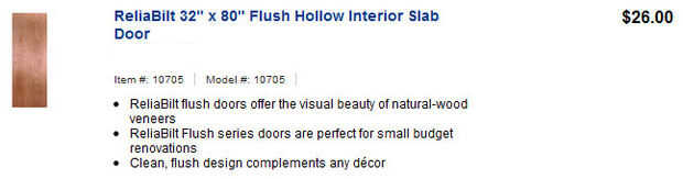 -2 puertas madera de interior hueco (ancho total debe ser unos 4" más ancha que la cama)... $26.00 x 2 = $52,00