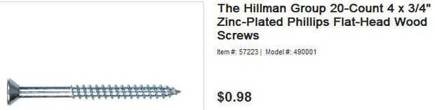 -24 tornillos de madera (4 x 3/4")...$0.98 x 1.2 = $1,18