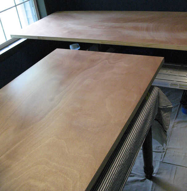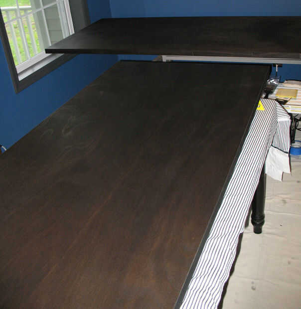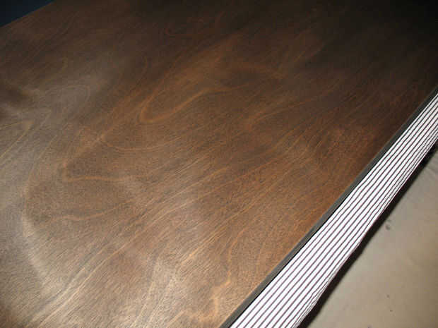 Mancharon ambos lados de ambas puertas. Ya que yo estaba usando una mancha oscura el grano llegó a ser muy visible y también lo hizo algún defecto en las puertas. La coloración de ambos lados le da la oportunidad de escoger el mejor lado para mostrarse.