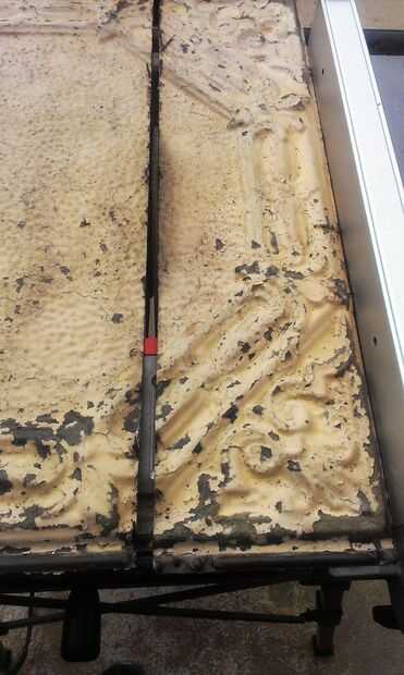 En nuestro salón tenemos un pequeño parche de caída de techo en el centro de la sala, básicamente un pedazo gigante de cinta adhesiva para tapar mala carpintería. Constantemente se estaba haciendo daño por agua de lo que parece un agujero gigante en