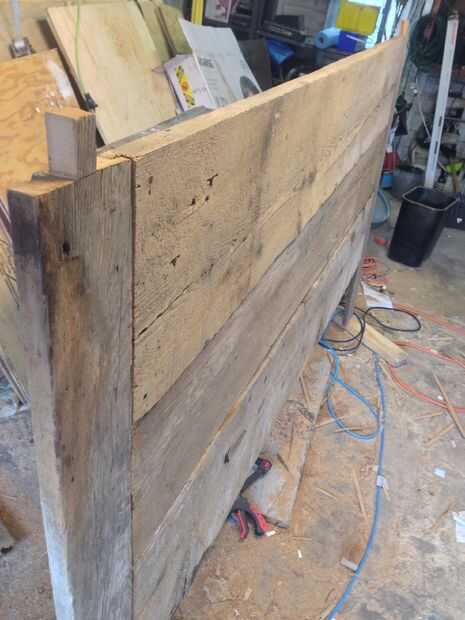 Necesitaba un cabecero para mi habitación, toda la madera fue rescatada de los proyectos que se han terminado en los últimos años alrededor de la yarda. Tuve que reemplazar unos postes de la cerca, 4 x 4 puestos estén cortadas al tamaño de ellos, y u