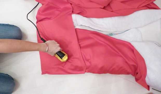 Hacer lo mismo con la tela roja, así que todo está oculto.