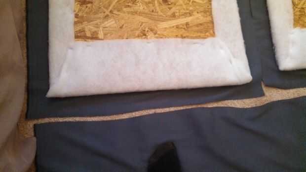 Próximo - vamos a conseguir que bateo en allí! El rodillo, poner la madera contrachapada en la parte superior y cortar a la forma. Luego tire de los bordes y simplemente los grapas en la parte posterior.