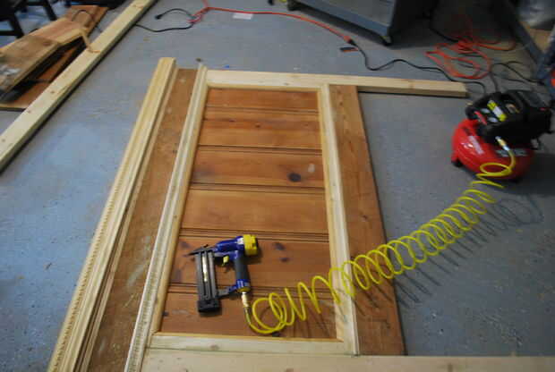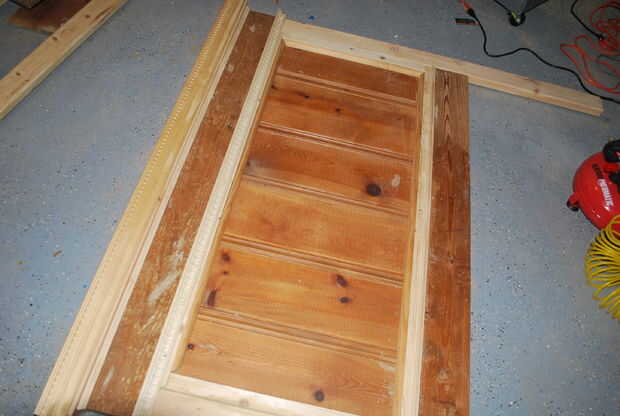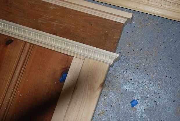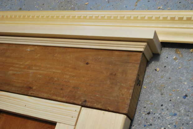 En mi caso que usé cuarto de 1/2 pulgada trozos redondos para el interior del revestimiento, moldura de dentículo crudos en la parte superior y crudo troquelado moldeado, en el medio y pino detener moldeado. Todo ajuste se encontró en Lowes.