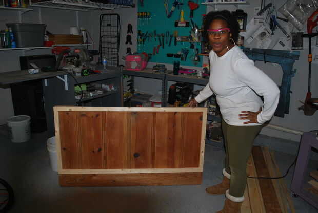La base del panel es un recuperado 2 x 6 corte hasta 55".