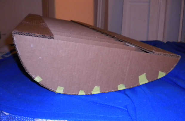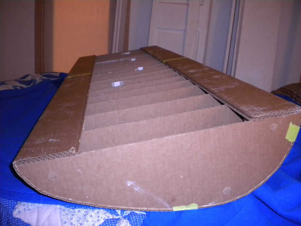 La longitud de cada piel debe ser 30", con el grano orientado a lo largo de la longitud. Averiguar el ancho es complicado. Se extienden una longitud de hilo alrededor de la curva y marca con un rotulador. A partir de un 1" desecho, corte 1/8" ancho ranuras espaciadas la longitud del hilo + 1/8". Dejar 3" pestañas más allá de las ranuras. Banda alrededor del borde de la mesa para suavizar una curva. Prueba de ajuste de envoltura alrededor del esqueleto. Una vez que una tira que se ajusta firmemente alrededor de la curva, cortar las pieles de tamaño completo.